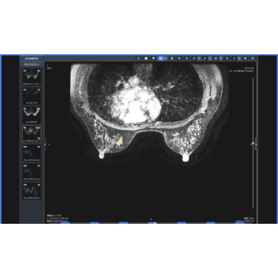 应用乳腺MR检查T1、T2、DCE、DWI序列数据,智能化完成乳腺腺体结构类型确定、乳腺病变识别检出与分割定位、乳腺病变MR BI-RADS分型;辅助诊断原位癌、浸润性癌、导管内乳头状瘤、纤维腺瘤、叶状肿瘤、乳腺炎、腺病等乳腺疾病;自动生成结构化报告,输出早期强化率(EER)、TIC曲线、ADC数值等多维度参考信息,帮助医生提高诊断效率。