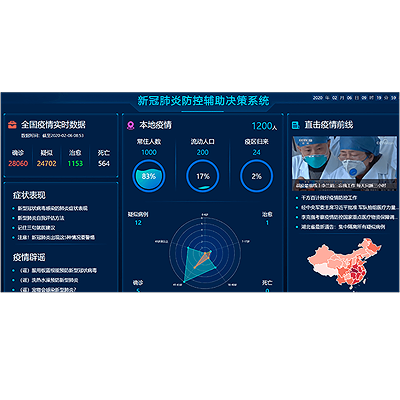 统计分析:在新增发病、发病趋势、病情同比/环比、类型、发病地域、病源等多个维度进行预警监测数据统计分析,将统计分析结果用可视化的图表展示 警报预示:对关键的预警指标建立预警阈值,实现准实时上报,为政策实施提供数据支撑与数据反馈