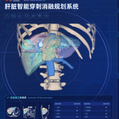 SenseCare®肝脏智能穿刺消融规划系统基于人工智能技术,进行个性化经皮穿刺手术智能规划,为医生提供安全性、可行性和有效性高的消融手术支持。